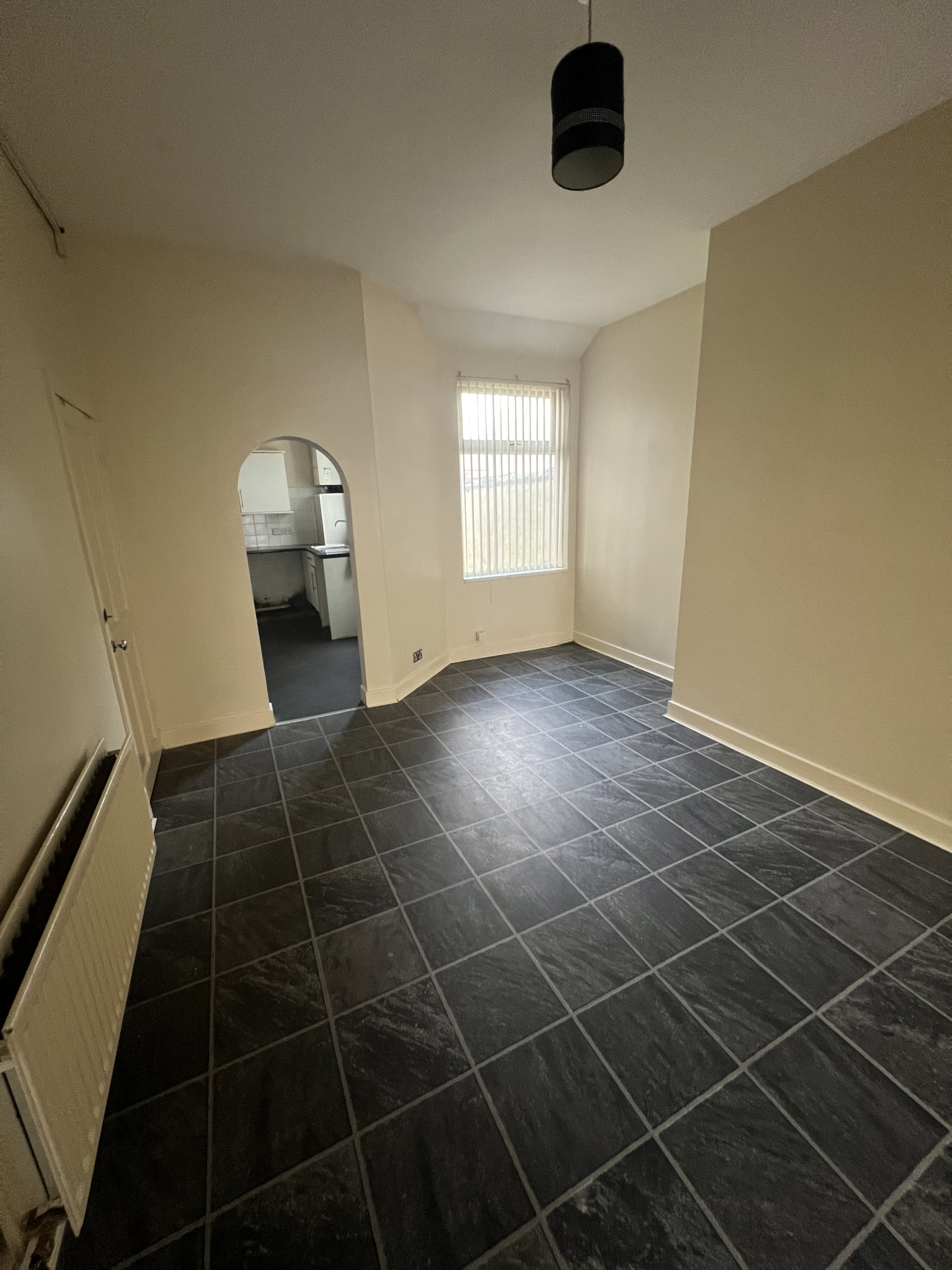Double glazed UPVC window to the rear aspect, gas central heating radiator, power points, and understairs storage.