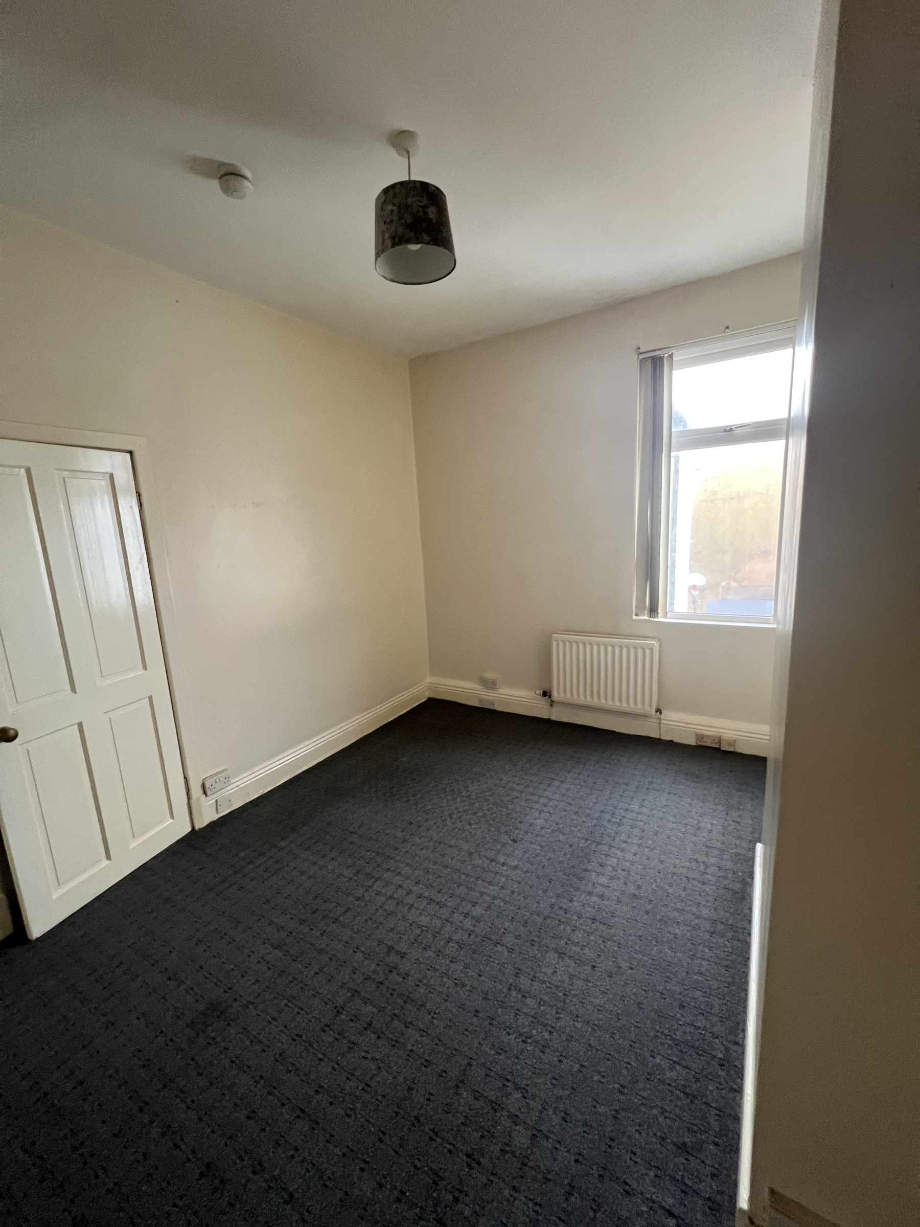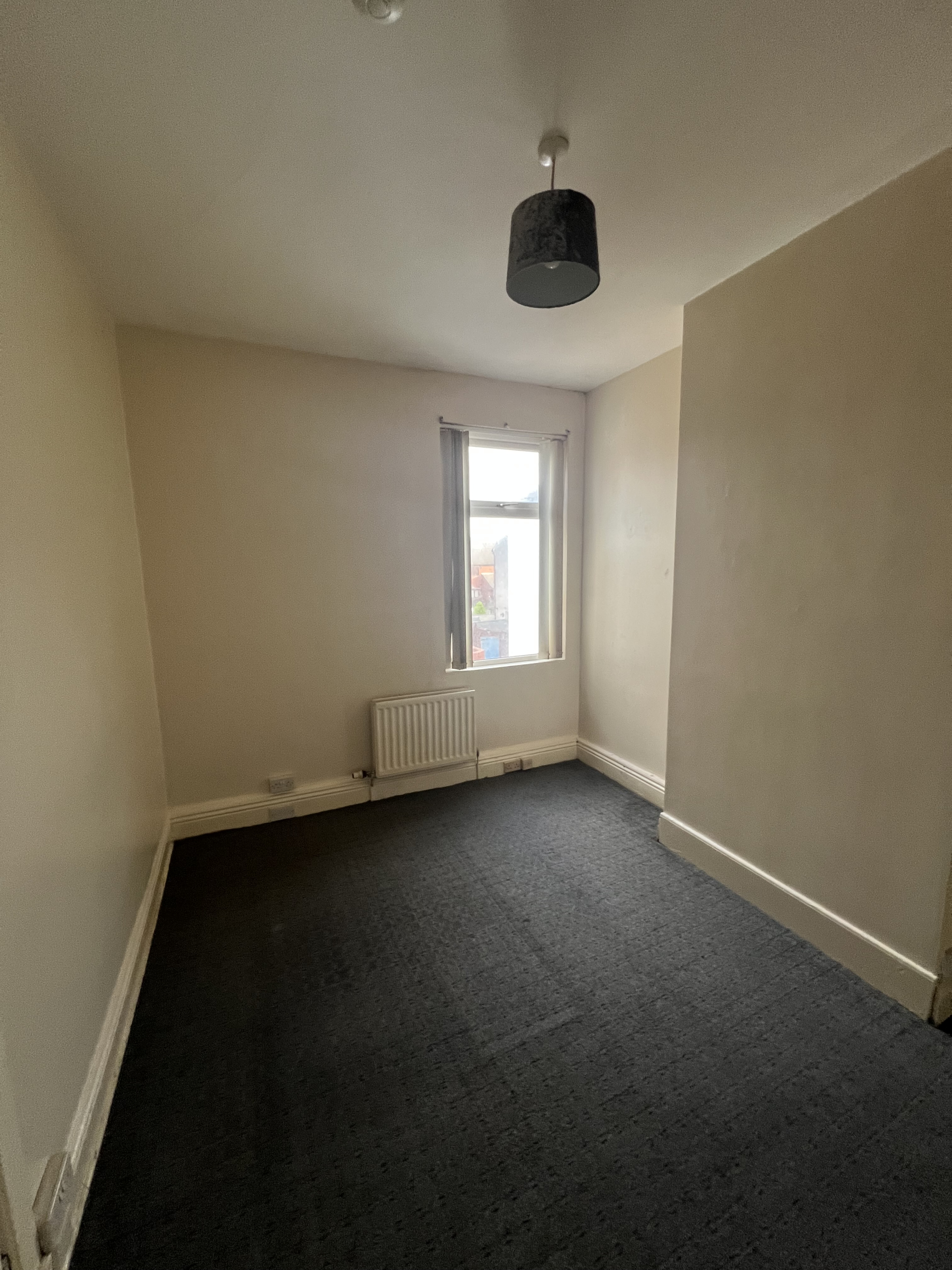 UPVC double-glazed window to the front aspect, gas central heating radiator, and carpeted flooring.